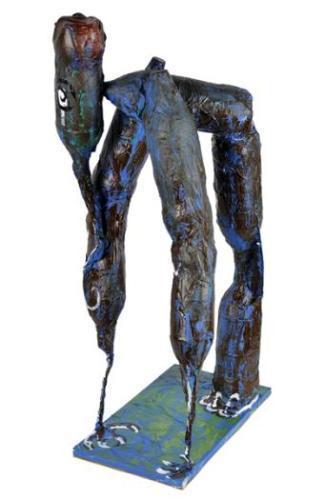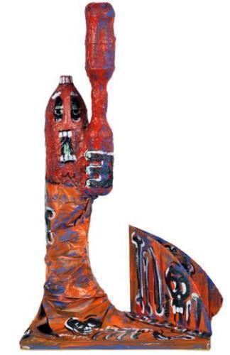 Milton Coelho, desenhista, gravador, inspirado pelo mundo das HQs, com suas cores fortes e formas vibrantes, passou a trabalhar também com a arte da reciclagem, sem constrangimentos em deixar aparente as formas de garrafas PET, latas, embalagens de leite, todos cobertos com fita PVC e pintados com brilho e intensidade. As duas peças que expõe são desconcertantes; estranhas, carregadas de tensão e da angústia de um ser preso em sua própria realidade, em seu mundo interior. As figuras retorcidas, escuras, caminhando para um objetivo desconhecido: o da cisão com a realidade. Totêmicas, as vezes bradam clavas no ar, num ato de revolta a incompreensão de tudo o que não é óbvio. Apesar de portador de uma técnica esmerada, deixa partes semi-acabadas, inacabadas, pedaços de fita que pretendem deixar clara a imperfeição da vida.