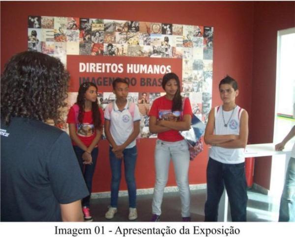 Em outro momento, ocorreu a visita de alunos do 2º e 3º anos do ensino médio do Colégio Didático. Se mostrando entusiastas do tema, alguns estudantes dessa turma procuraram a monitora e pediram a disponibilização do material didático elaborado pela equipe de monitoria, e que aborda um pouco da história dos direitos humanos e sobre sua abrangência. Em certo momento da discussão prévia à visita da exposição, um aluno se propôs a relatar seu ponto de vista sobre uma das questões relacionadas ao tema da mostra: o respeito à homoafetividade. Sua fala foi muito importante e se prevaleceu de extrema consciência, o que fortaleceu ainda mais o momento da monitoria como canal para a abordagem de temas transversais fora e dentro da sala de aula.