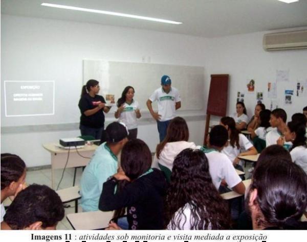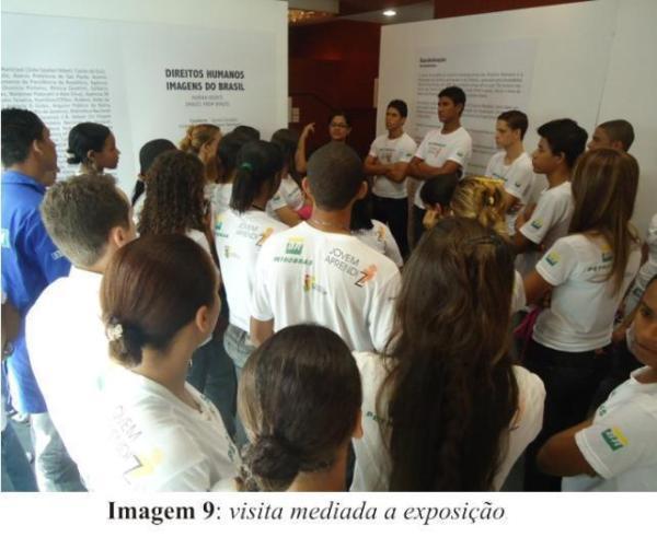 A exposição Direitos Humanos Imagens do Brasil teve início no dia 02 (dois) de maio de 2011 com coquetel de abertura e entrega do catálogo para os visitantes durante o vernissage. No dia 03(três) do presente mês em reunião a equipe de mediação cultural optou pela metodologia que seria utilizada durante as visitas. Ficou acordado que a monitoria seria dividida em dois momentos: mediação na galeria e apresentação de slides referentes ao tema da exposição em sala de aula. Foi formulado também um jogo didático sobre a exposição, as peças do jogo seriam as imagens e as palavras contidas no catálogo da mostra. O objetivo do jogo é que os alunos divididos em grupos escolhessem uma imagem e uma palavra que se relacionassem. Para que fosse possível a visita de escolas ao espaço da galeria Jenner Augusto foi elaborado um plano de visitação e entregue pelos monitores em algumas instituições de ensino próximas a Sociedade Semear. Pela Manhã, as primeiras visitas mediadas ocorridas no período da manhã foram com as turmas do Projeto Mais Educação do colégio Estadual Walnir Chagas sendo o total de três visitas. Foi utilizada a metodologia planejada durante a mediação cultural que consistiu na apresentação da exposição, aplicação do jogo e visita ao espaço expositivo, ao final cada aluno recebeu o catálogo da exposição.