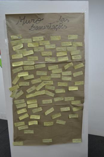 foi organizada em três momentos. O primeiro, denominado de “Muro das Lamentações”, os jovens responderam refletiram sobre qual a maior dificuldade enfrentada dentro do