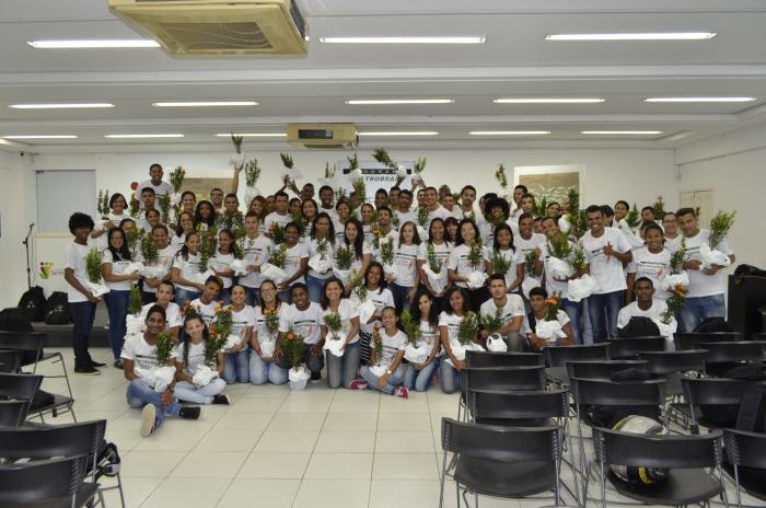 distribuição de mudas de plantas que deverão ser cuidadas por cada jovem,