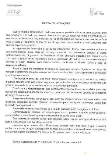 torne realidade até o final do PPJA. No terceiro momento os jovens escreveram