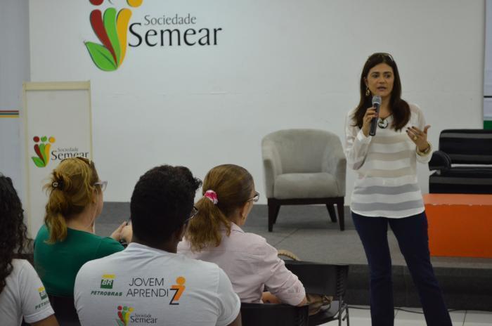 aprendiz Chirley Oliveira. A atividade foi encerrada com a orientação das gestoras da Petrobras, Lucinda de Melo e Claudia Correia.