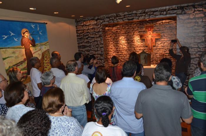 da Ordem Franciscana Secular. A imagem e um pedaço do osso do santo foi recepcionados