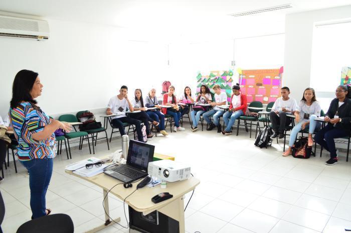 aulas de português, matemática, informática, relações interpessoais, cidadania,