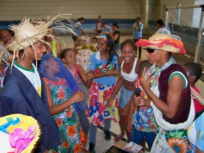 Caracterizados com trajes típicos, todos se divertiram com a quadrilha junina e o casamento caipira que contou com a participação das crianças e adolescentes assistidas pelo projeto além de toda a equipe de educadores.