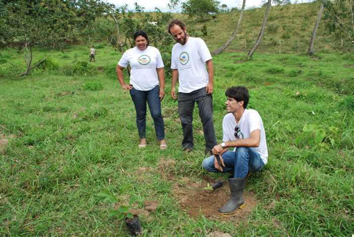 Dando continuidade às ações de recuperação florestal do projeto Preservando Nascentese Municípios técnicos da Secretaria de Estado do Meio Ambiente e dos Recursos Hídricos (Semarh), juntamente com membros da Sociedade Semear, estiveram em campo durante a manhã do dia 13, finalizando a última etapa do plantio de mudasde espécies nativas da Mata Atlântica, em nascentes e matas ciliares do rio Siriri-Vivo, no povoado Mata do Cipó localizado no município de Siriri. A realizaçãodo plantio aconteceu na propriedade de Kátia Moura, onde foram plantadas cercade 100 mudas de essências florestais como pau-Brasil, pau-pombo, ingá, jenipapo, biriba, jatobá, falso-ingá, aroeira, sucupira, saboneteira, mulugu, cajueiro e tamboril. Elas foram plantadas pelos alunos da Escola Municipal Santo Antônio e da Escola Municipal José Coelho e Campos. Empolgados com o plantio, os alunos não perderam tempo e aprenderam com os técnicos os métodos de plantio, como a realização do coroamento, abertura de covas, adubação e plantio das espécies em tubetes e sacos plásticos.