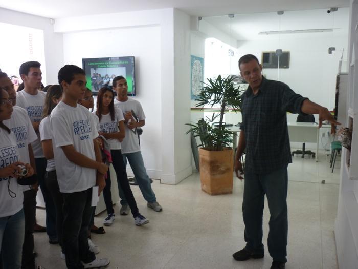 Os alunos do Programa Adolescente Aprendiz do Senac estiveram nesta tarde de sexta-feira, dia 21 de outubro, na Sociedade Semear em visita à exposição Ruídos, do artista plástico e xilogravador Elias Santos. A visita faz parte de uma atividade voltada para a temática de comunicação corporativa, sendo que o principal objetivo é alertar de uma forma visual para os problemas relacionados ao trânsito. Segundo a professora Tereza Emília Gomes, a exposição “interessa aos alunos, afinal todos fazem parte do trânsito, seja como motorista ou como pedestre. E contribui para a melhoria na qualidade de vida, através de uma mudança de hábitos e respeito à vida.” O próprio autor das obras, Elias Santos, guiou os estudantes durante a visitação. “Ruídos tem uma mensagem positiva. Não trago imagens claras da violência, e sim sobre o impacto, a velocidade, o caos e as lembranças. Através desse diálogo com a sociedade é possível educar e mostrar que a convivência no trânsito é uma convivência como outra qualquer”,observa. As obras expostas são resultados de um ano de trabalho e da própria experiência do artista. “Essa é a realidade das ruas, rodovias e estradas. A idéia surgiu da minha presença constante nas vias. Todos os dias em que eu saía para fotografar encontrava alguma batida”, conta. Por fim, Elias manda um recado para quem vier conferir a exposição. “Tenho certeza de que quem sai dessa exposição olha duas vezes antes de atravessar a rua.” Ruídos fica em cartaz até o dia 18 de novembro, aberta para visitação de segunda a sexta das 09h às 19h. A exposição tem curadoria assinada por Marjorie Garrido, coordenação e expografia de Silvane Azevedo e design de Gabriela Etinger. Conta com o apoio da Semear, Senac, Restaurante Mãe Preta, Impacto Comunicação Visual, Superlux, ImpressãoTotal, Restaurante Corno Velho, J. Andrade e Casa Digital.