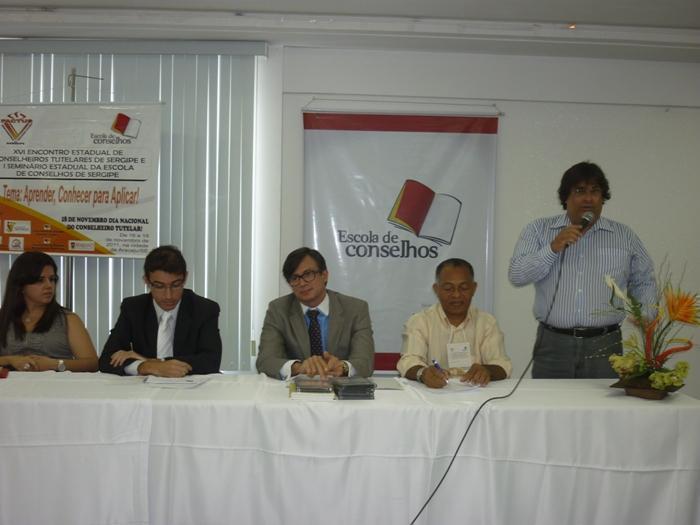 O dia da abertura contou com a presença da Conselheira Tutelar do 2º Distrito de Aracaju, Cícera Maria de Castro do Egito, que falou da importância do Conselheiro Tutelar. O segundo painel apresentou os trabalhos desenvolvidos pela Escola de Conselhos de Sergipe, projeto executado pela Sociedade Semear, através do convênio com a Secretaria de Direitos Humanos da Presidência da República.