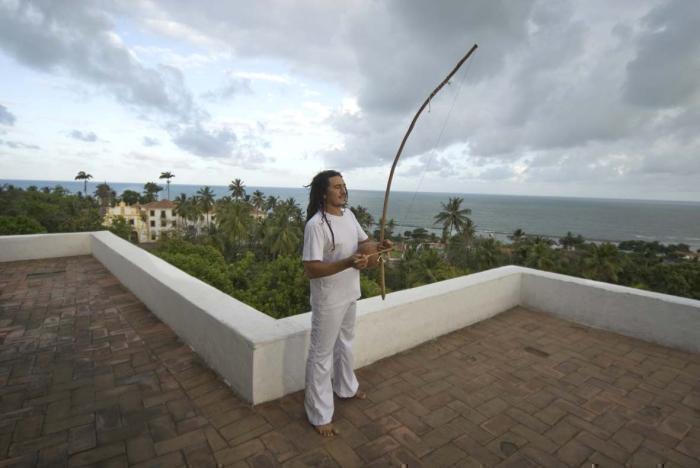 A expografia recria um ambiente de sala de capoeira e utiliza elementos como um assentamento para o Orixá Exu – a entidade que deve ser cumprimentada antes de qualquer roda iniciar-se –; uma fotografia em louvor ao grande Mestre Pastinha – remontando um pequeno altar existente em diversos centros de ensino e prática da capoeira –; os instrumentos musicais utilizados e uma ambientação sonora típica das rodas.