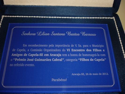 A Diretora Administrativa da Sociedade Semear, Liliam Santana, foi homenageada durante o 6° Encontro dos Filhos e Amigos de Capela, com o “Prêmio José Guimarães Cabral”, na categoria “Filhos de Capela”, como forma de reconhecimento e notória importância para o município sergipano. A solenidade de entrega aconteceu no último dia 26 de maio, no Iate Clube de Aracaju. A equipe de funcionários e colaboradores da Semear parabeniza a Diretora pelo prêmio recebido.