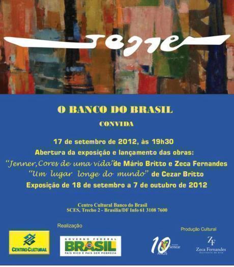 Depois do grande sucesso de público e de crítica em Aracaju e em Salvador, Mário Britto e Zeca Fernandes lançam em Brasília, um novo livro sobre a vida e obra do artista plástico sergipano Jenner Augusto, intitulado “Jenner: cores de uma vida”. Essa nova publicação abordará novas facetas do artista, como desenhista, gravador, escultor e ilustrador. O evento será realizado, em grande estilo, no Centro Cultural do Banco do Brasil - CCBB, no próximo dia 17 de setembro (segunda-feira). Além do livro, haverá uma exposição com 20 obras de Jenner, que ficará em cartaz até o dia 07 de outubro, com visitação gratuita. No mesmo dia (17/09), haverá o lançamento de um romance do idealizador da Sociedade Semear e ex-presidente da Ordem dos Advogados do Brasil (OAB) Cezar Britto, denominado “Um Lugar Longe do Mundo”, que traz na capa um quadro de Jenner