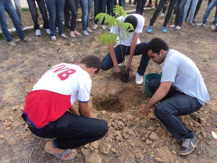 Três turmas realizaram cada uma o plantio de uma muda, pela qual serão