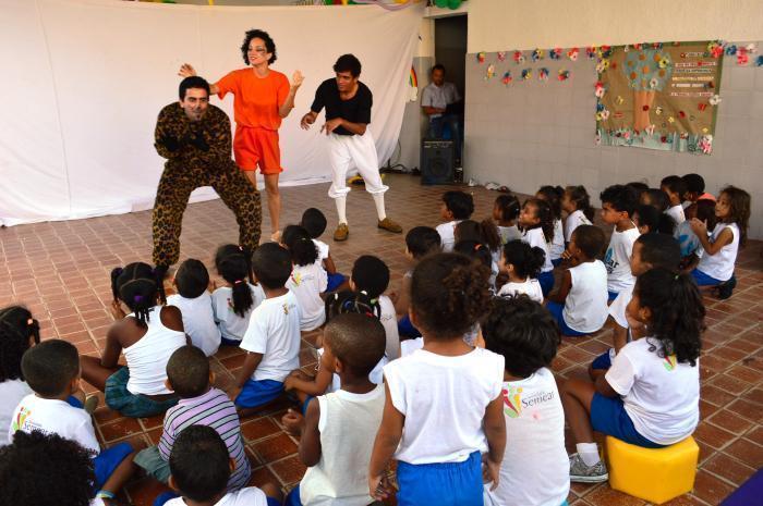 com animação de Tia Lú, guloseimas e teatro com o Grupo Raízes, apresentando a