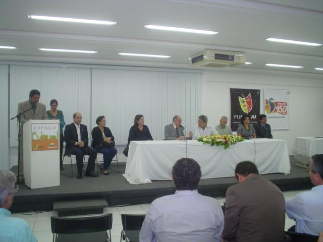 Foi uma solenidade rápida. Déda foi ladeado na composição da Mesa pelo seu vice, Edvaldo Nogueira; pelo secretário estadual de Cultura, José Carlos Teixeira, representando o governador João Alves Filho; pela deputada Ana Lúcia Menezes; pela sua secretária de Cultura, Turismo e Esportes, Karlenne Sampaio; pelo reitor da Universidade Federal de Sergipe, Josué Subrinho; e pelo pró-reitor administrativo da Universidade Tiradentes, Jouberto Uchôa Júnior, representando o reitor Jouberto Uchôa.