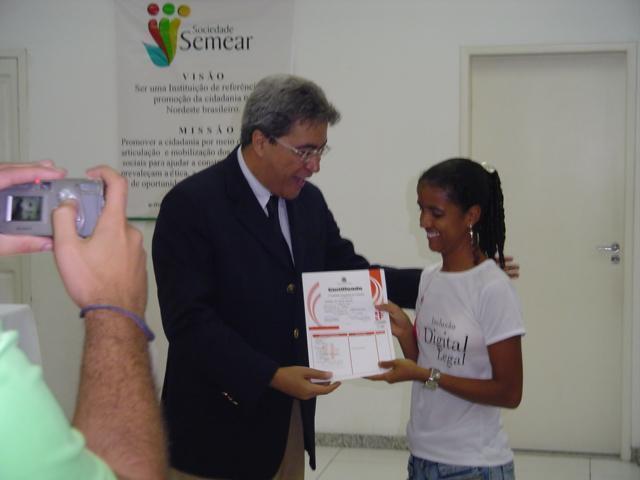 Aconteceu ontem no auditório da Sociedade SEMEAR a entrega dos certificados das primeiras turmas do Projeto “Inclusão Digital Legal”. O grande diferencial desse curso foi o uso do softwares livres, baseado no Linux. Dessa primeira fase, o projeto atendeu 96 jovens da cidade de Aracaju.