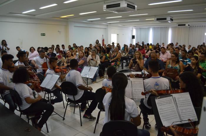 As crianças e os adolescentes do Projeto “Uma Porta para a Inclusão” projeto desenvolvido pelo Instituto e Creche Menino Jesus e sua Orquestra de Violinos deu inicio ao Seminário Estadual 25 anos do Estatuto da Criança e do Adolescente: Conquistas e Desafios, na tarde de ontem (22/03), no auditório da Sociedade Semear, sede da Escola de Conselhos de Sergipe, em Aracaju.
