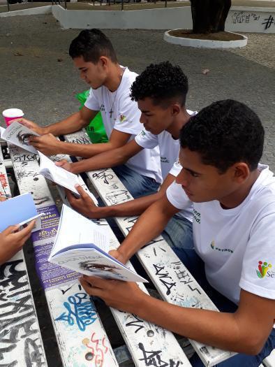 Nos dias 27 de setembro e 03 de outubro os jovens da 6ª edição do Programa Petrobras Jovem Aprendiz (PPJA) participaram da atividade “Leitura na Praça”, organizada pela educadora de Português Instrumental, Liliam Farias. A atividade teve como objetivo estimular a leitura e a reflexão crítica, num ambiente fora do convencional. A atividade contou com a parceria da Editora Pallas com a distribuição dos livros “Olhos D’água”, de Conceição Evaristo. “O projeto, além de estimular o hábito pela leitura de livros, tem por finalidade contribuir com as atividades de leitura e escrita trabalhadas nos encontros de Português instrumental, do Programa Petrobras Jovem Aprendiz”, comenta a educadora Lilian. O espaço público utilizado foi a Praça Camerino, Centro de Aracaju, que possui uma estrutura física voltada ao estímulo da leitura, inclusive com cabine de troca de livros. Além disso, instiga os jovens a conhecer e ocupar os espaços públicos, ampliando o repertório cultural, e colocando-os como protagonistas sociais.