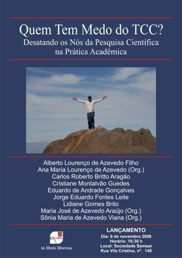 O livro – “QUEM TEM MEDO DO TCC? – Desatando os Nós da Pesquisa Científica na Prática Acadêmica”, abrange uma coletânea de 13 textos produzidos por um grupo de educadores, cuja diversidade de experiência se desenvolve entre a docência, a gestão e a pesquisa no campo da educação superior, coordenando e orientando importantes programas e projetos, entre os quais, as pesquisas de iniciação científica e o acompanhamento aos processos de elaboração dos Trabalhos de Conclusão de Curso, nas áreas da graduação e da pós-graduação. Constitui-se de reflexões, práticas e sugestões, cuja finalidade é promover um olhar crítico sobre os desafios presentes na etapa que encerra os cursos de formação acadêmica.
