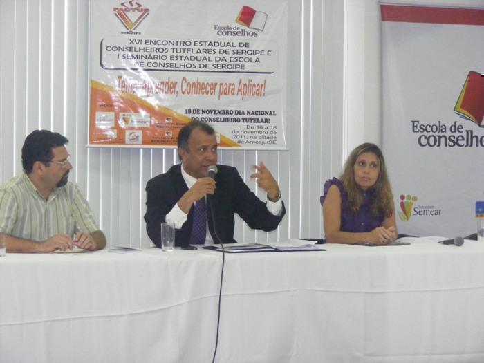 O dia da abertura contou com a presença da Conselheira Tutelar do 2º Distrito de Aracaju, Cícera Maria de Castro do Egito, que falou da importância do Conselheiro Tutelar. O segundo painel apresentou os trabalhos desenvolvidos pela Escola de Conselhos de Sergipe, projeto executado pela Sociedade Semear, através do convênio com a Secretaria de Direitos Humanos da Presidência da República.